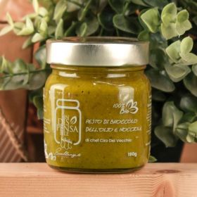 Pesto di broccolo dell’olio e nocciole avellane 180g Ingredienti: Broccolo dell’olio Riso Olio evo Sale marino integrale Nocciole avellane Scalogno