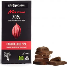 °*Pasta di cacao - °*Zucchero integrale di canna 21% - °*Burro di cacao -°*Zucchero di canna. Cacao: 70 % minimo. °Ingredienti biologici *Ingredienti del Commercio equo: 100% in peso