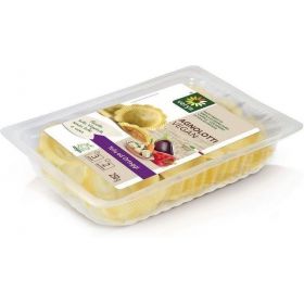 Var durum wheat semolina. Hats, 20% tofu (soy beans, water, nigari: Magnesium chloride), mixed vegetables in variable proportion 14% (carrots, onions, potatoes, eggplant, peppers), water, potato flakes, corn flour 4%, extra virgin olive oil, sea salt, oat fiber, tomato sauce, yeast extract, olives, capers, marjoram, sage, rosemary, natural flavor - Validity '65 days, guaranteed delivery - CONSERVATION: in the refrigerator at + 4