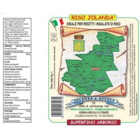 Sacco da 5 Kg di riso Arborio. Tipico riso da risotto i suoi chicchi sono i più grandi tra tutte le varietà di riso coltivate.Ingredients