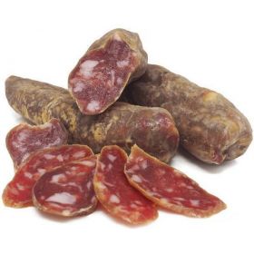 Sausage ancient peasant tradition Molisana made with choice of pork meat, salt, sweet red pepper and fennel selvatico.Il curing process is completed no earlier than six weeks. In this way the product reaches optimal ripeness that exceptional nutritional and dietary garantiscequalità. When cut, the product has a color ranging from bright red to deep red; the fat parts occur in the right proportion compared with the lean and stand out for their white color. Each vacuum-packed sausage is 230 gr each.