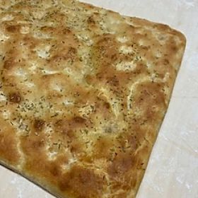 Cotta nel forno a legna, lievitata con lievito madre, certificata bio, prodotta con 50 % farina di grano tenero tipo “0” e 50% farina di grano tenero tipo “2” da grano coltivato in azienda con aggiunta di olio extra vergine di oliva bio, sale e rosmarino