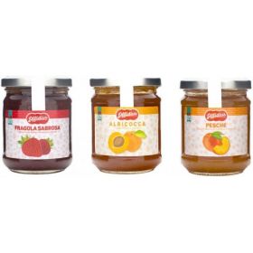 Le fragole non sono tutte uguali e tra queste ce n’è una in particolare che meglio esprime le peculiarità di questo frutto. La fragola Sabrosa è una monocultivar coltivata in Basilicata dove cresce rigogliosa grazie al clima favorevole e alla cura dei coltivatori. Si tratta di una fragola molto aromatica dal gusto intenso e dal sapore zuccherino. Ha in media una grandezza maggiore rispetto a quelle delle altre qualità e si presta con particolare favore alla trasformazione in confettura. Per chi nonla conosce questo è un invito spassionato ad assaggiarla, ne varrà la pena. - La tradizione delle confetture vede tra le classiche la confettura di albicocca. Sembra quasi che non se ne possa fare a meno sulla tavola della prima colazione. Certo è che si tratta di una confettura di facile e largo utilizzo. Una volta aperto il vasetto si sente avverte un gradevole aroma di albicocca che ricorda quelli della tradizione, confermando la sua genuinità e naturalezza. - A chi non è capitato di camminare tra i banchi del mercato e sentire tutto ad un tratto un piacevole profumo di pesca proveniente dalla più vicina bancarella. Questa confettura ha un profumo intenso che non risparmierà neanche chi di confetture non se ne intende. Probabilmente è il frutto che mette tutti d’accordo, soprattutto quando trasformata in una gustosa e profumata confettura.
