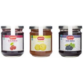 La prugna è uno di quei frutti che si apprezza solo quando piace veramente. La sua confettura è invece molto gradevole e accontenta un po’ tutti i palati. La si apprezza soprattutto quando non ci si aspetta molto e proprio in quel caso si rimane piacevolmente sorpresi. - L’uva da pasto, rossa o bianca che sia, quella da vino e quella per dolci. In tutte le sue forme e in tutte le sue varietà ha sempre incuriosito palati di tutte le età. La confettura stupisce ancor di più perché non è consuetudine trovarla nel punto vendita sul banco delle confetture. La qualità di uva che utilizziamo è molto zuccherina ed aromatica al punto tale da conferire un aroma senza eguali alla confettura. Un po’ tutte le nostre confetture si possono utilizzare per dolci ma questa in particolar modo sembra essere fatta appositamente per finire nell’impasto di una crostata o di un qualsiasi altro dolce che si voglia fare. - La ciliegia è uno di quei frutti ai quali è difficile dire basta; una tira l’altra. La confettura esprime appieno il gusto acidulo e fresco del frutto, motivo per cui una volta assaggiata non se ne può fare più a meno.