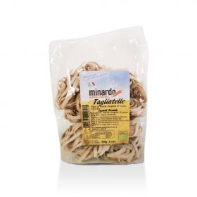 Pasta di farro semi integrale biologica trafilata al bronzo. Le Tagliatelle di farro, solo della varietà Triticum (quello che fa la pasta buona, che tiene la cottura). dal campo alla forchetta garantiamo una pasta biologica di alta qualità. I nostri MASTRI PASTAI, dicono che la nostra MATERIA PRIMA È VIVA... il farro è più difficile da lavorare perché sempre diverso, dipende dalla stagione.. così dicono. Il farro è un cereale antico, adatto anche a chi fa fatica a digerire la pasta tradizionale. Quello coltivato dagli agricoltori di filiera IRIS è il più buono per fare la pasta. Potete gustarlo con tutti i tipi di sugo, speciali con il ragù classico.