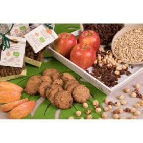 Fiocchio d'avena, Farina di avena, Olio etravergine di oliva, Uvetta, Mele essiccate, Nocciole, Sale marino integrale, Kuzu