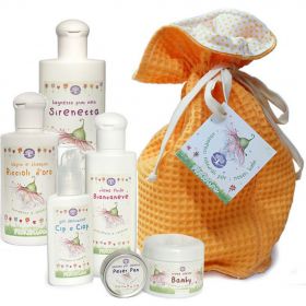 Acquistando il set completo Pratoline, in OMAGGIO il morbido sacchetto di cotone realizzato a mano! Ti chiediamo di indicare nelle note dell'ordine se si tratta di una bimba oppure di un bimbo. BIANCANEVE Crema fluida - morbidezza e candore Idratante e nutriente, protegge la pelle delicata dei più piccoli nel tenero abbraccio di Pratolina e Viola. BAMBY crema culetto - freschezza e benessere Rinfrescante e lenitiva, dona il sollievo di Calendula e Camomilla alla pelle arrossata. CIP e CIOP gel dentizione - sostegno e sollievo Lenitivo e rigenerante grazie a Salvia, Camomilla e Tiglio, con il sostegno di Mirra. SIRENETTA bagnetto primi mesi - purezza e protezione Con sale dell'Himalaya, purifica e protegge la pelle dei più piccin, addolcendo di Miele e Lavanda l'esperienza dei primi bagnetti. PETER PAM balsamo per ombelico - serenità e armonia Di giorno e di notte, armonia e serenità per i più piccini. RICCIOLI D'ORO bagno e shampoo - nutrimento e dolcezza Protegge e nutre i capelli. Aloe e Calendula donano protezione alla pelle da tutti gli agenti esterni e leniscono le irritazioni.