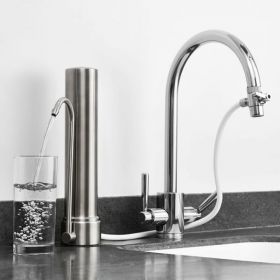 Doulton® HCS INOX si posiziona sopra il lavello e si collega direttamente al rubinetto con un raccordo filettato. Con una valvola deviatrice da fissare sul rubinetto esistente si può derivare l’acqua e purificarla direttamente nella candela Ultracarb® posizionata nel sistema in acciao INOX, composta di ceramica e carbone attivo compattato. L’acqua filtrata uscirà dal beccucio a collo di cigno orientabile.