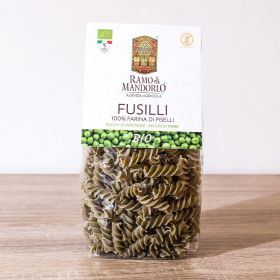 Fusilli di Piselli, fatti con il 100% di farina di piselli BIO e acqua di montagna. Certificati biologici e senza glutine, rispettano i più elevati standard di qualità, rendendoli adatti non solo ai celiaci, ma anche a vegani e vegetariani. Confezionati con ingredienti biologici e amore, rappresentano l’impegno per un’alimentazione consapevole e sostenibile.
