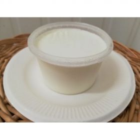 Natural sheep yogurt is compact, pleasant flavor, not strong, not very acidic. Organic fruit compote can be added.