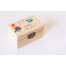 Zafferano PiediGrandi Bio in stimmi lavorato a mano, confezione in vetro dentro scatola decorata a mano da 1, 00gr